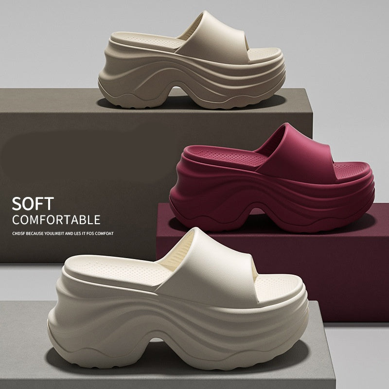 Women's Thick Bottom Elegant Slippers, Thick Bottom Cushion Fashion Open Toe Slippers